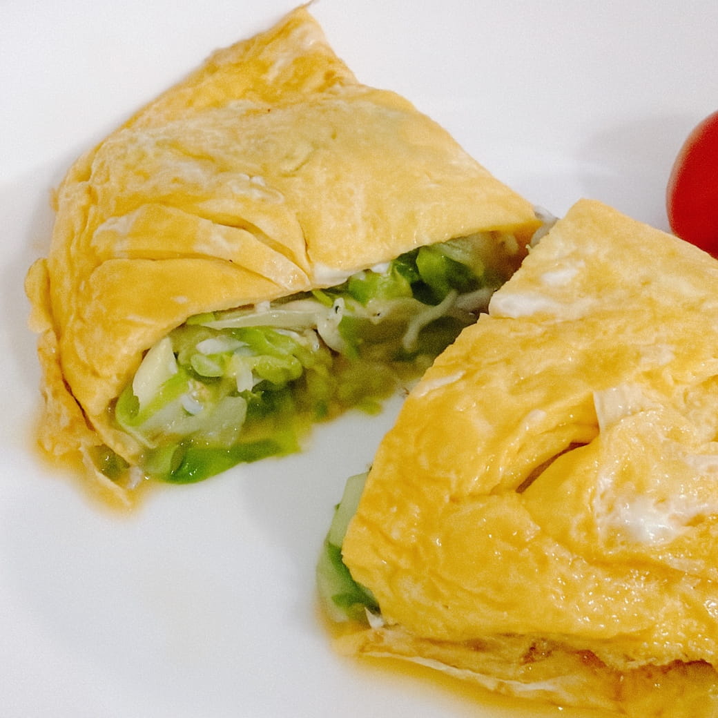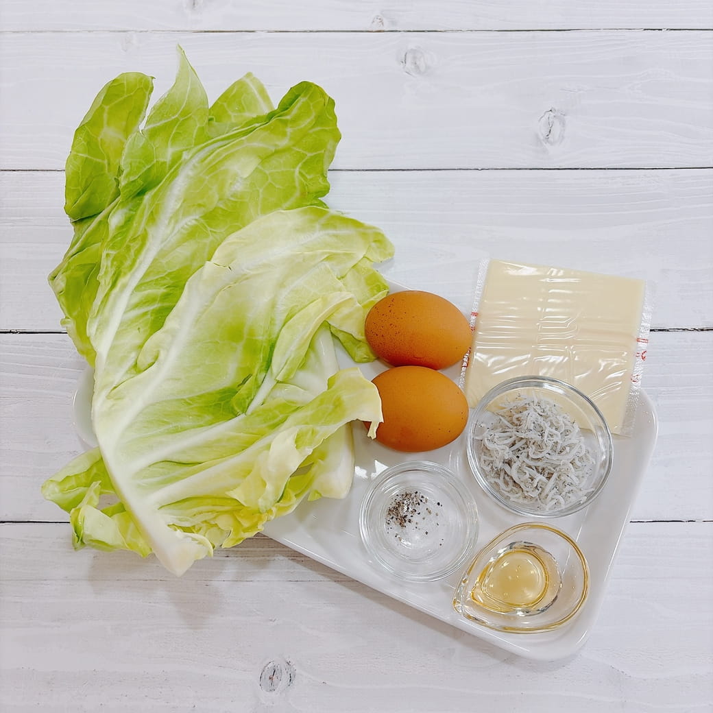 やわらかい春キャベツとしらすを卵で包んで