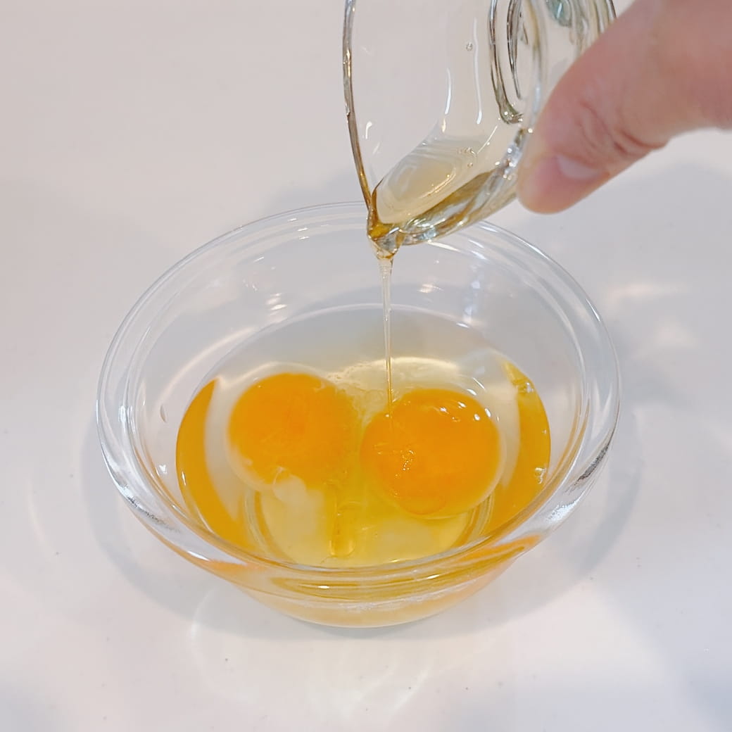 ⑶卵にハチミツと塩を少々加え、溶く