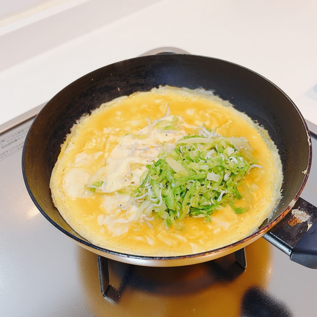 【レシピ】春キャベツとしらすのハニーチーズオムレツ