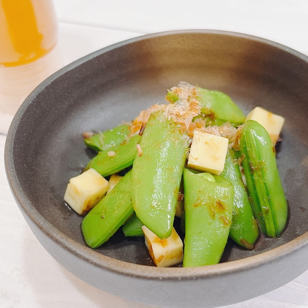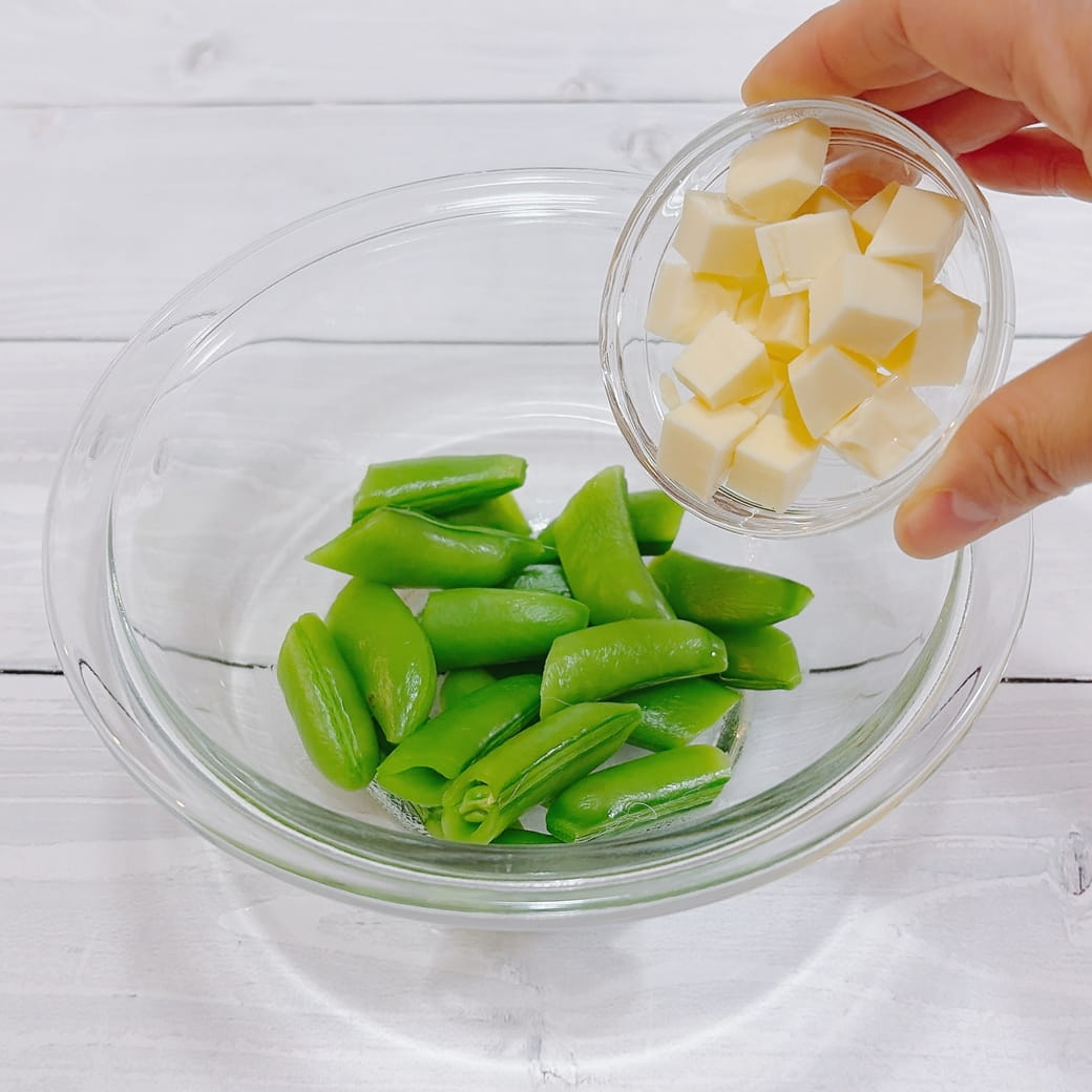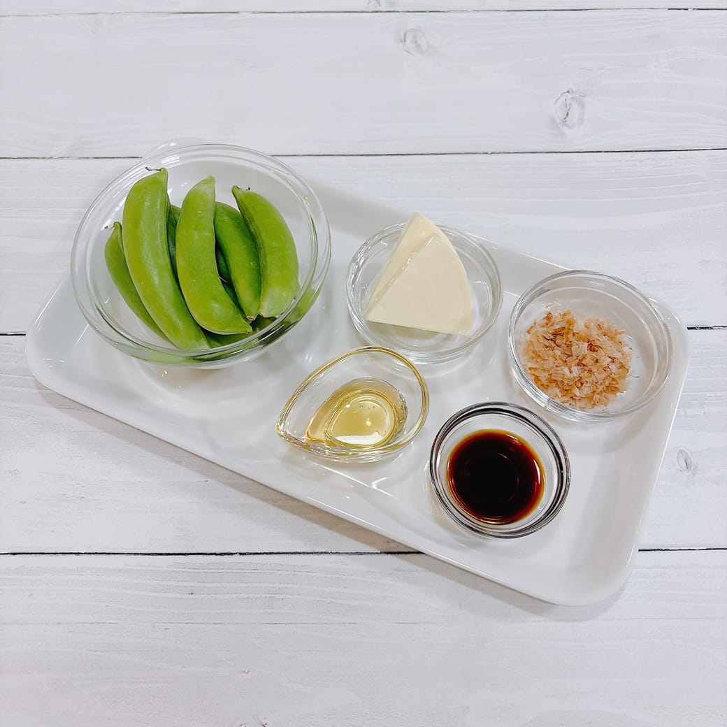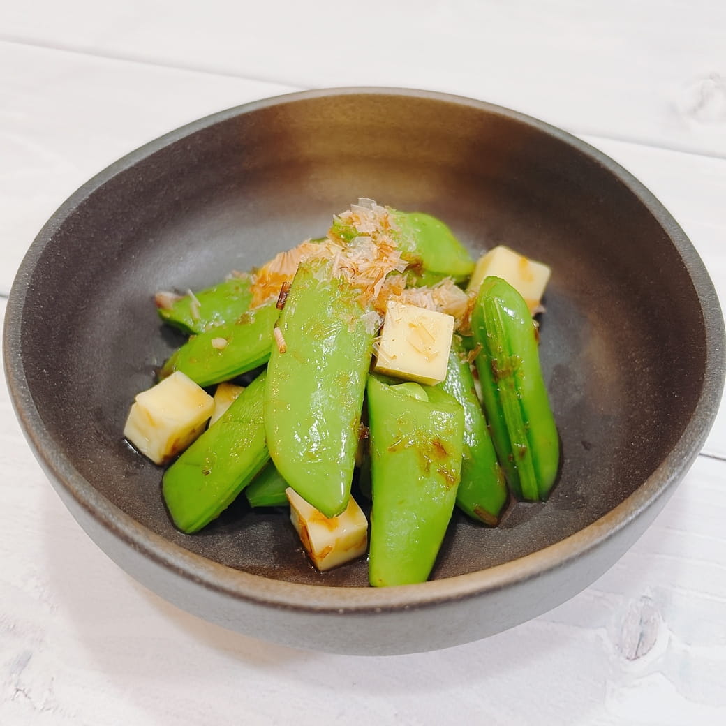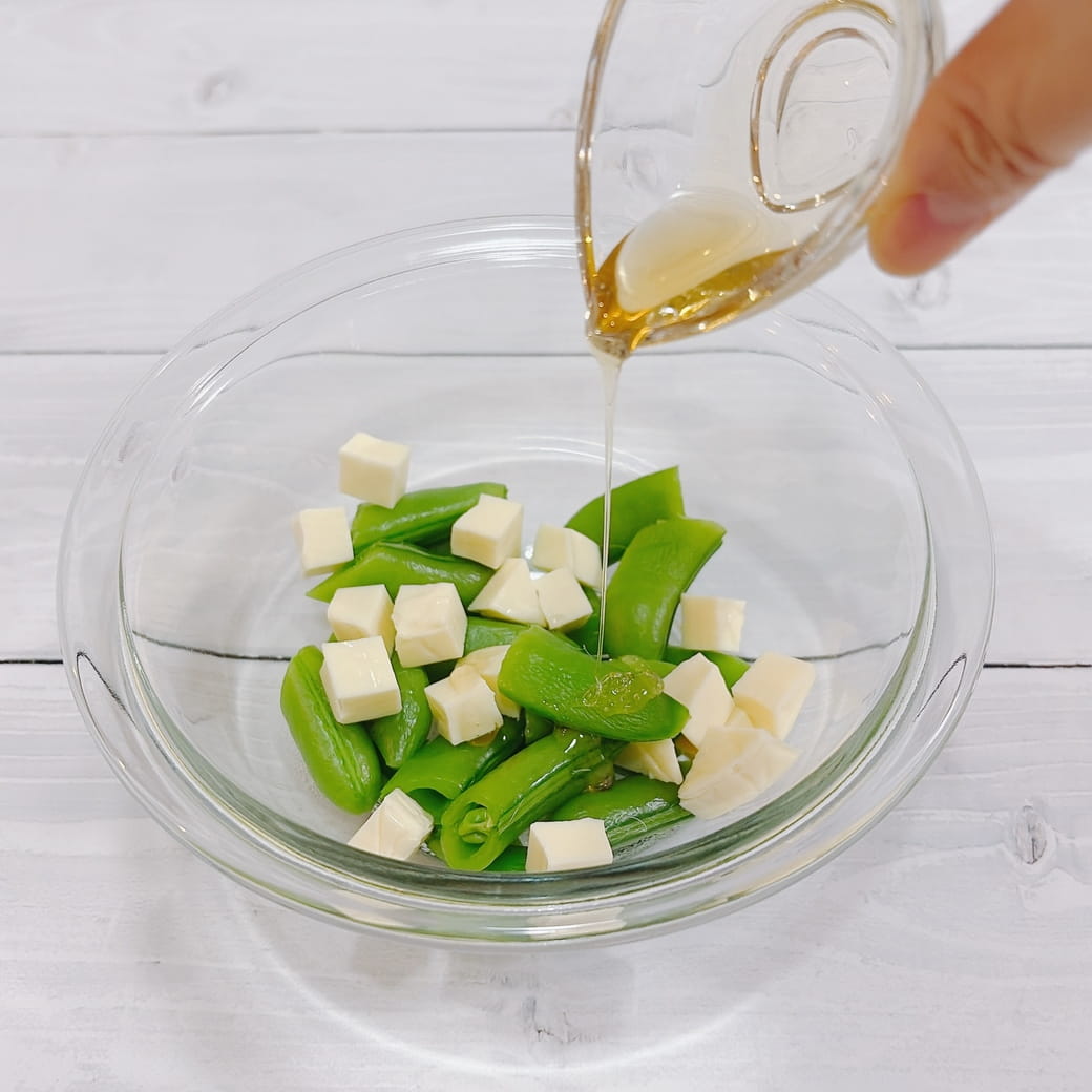 【レシピ】スナップエンドウとチーズのハチミツおかか和え