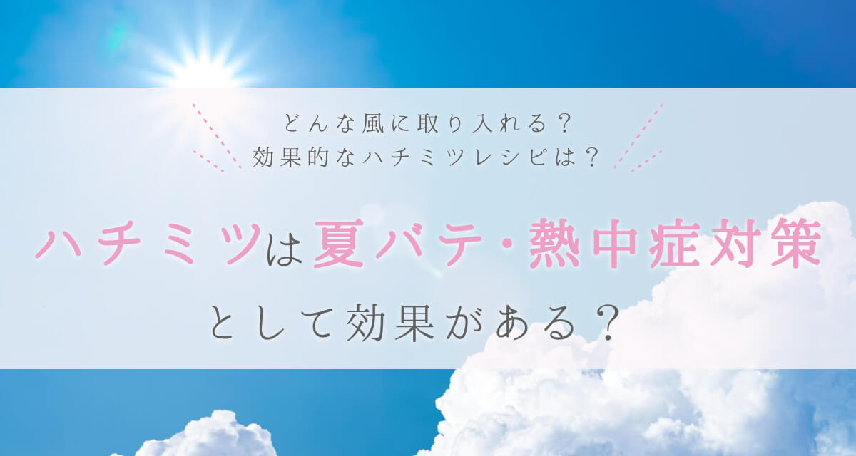 栄養価の高いハチミツは、速やかなエネルギー補給とビタミン・ミネラル補給が同時にできることから、夏バテや熱中症の予防、症状の緩和に効果が期待できます。