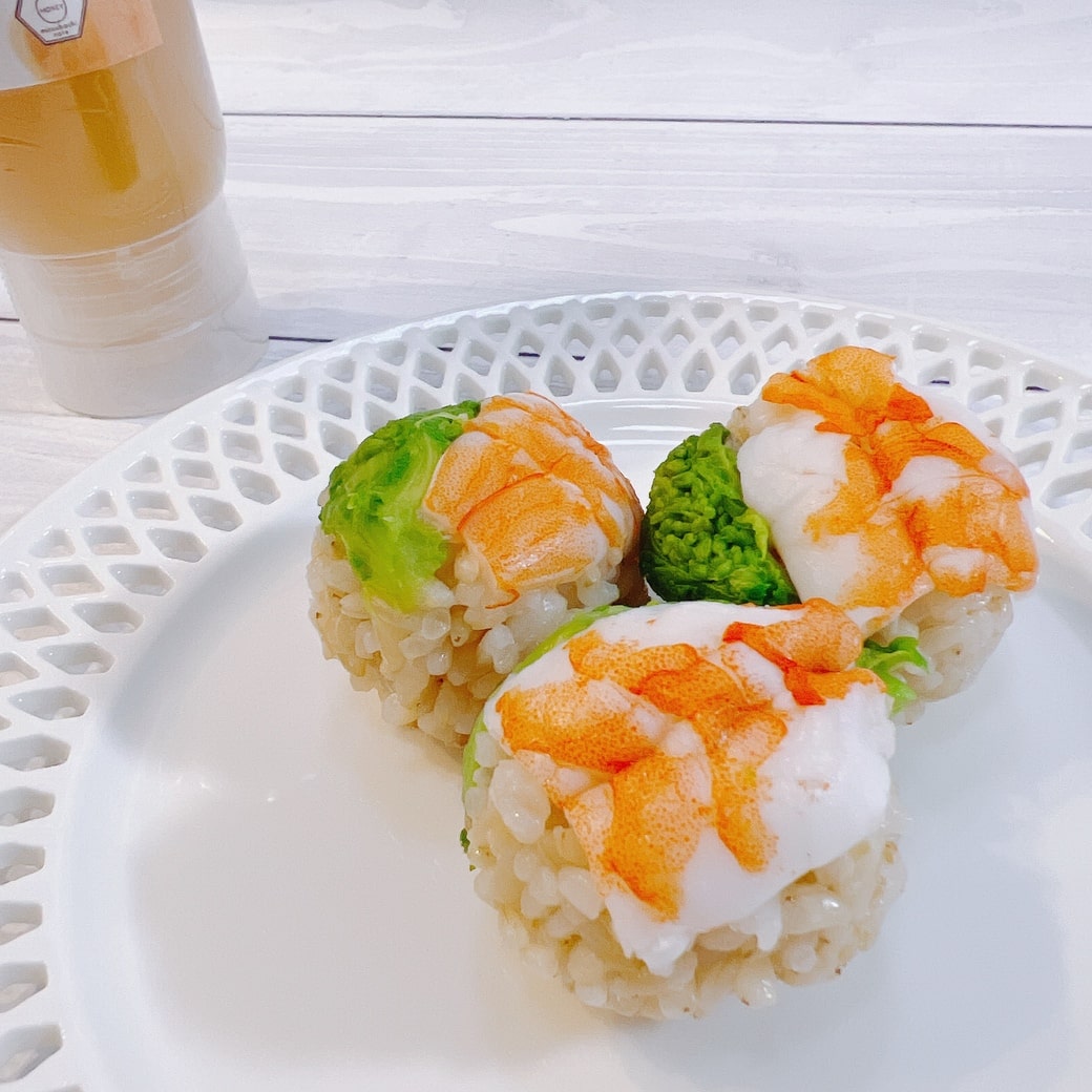 エビと菜の花のハチミツ手まり寿司