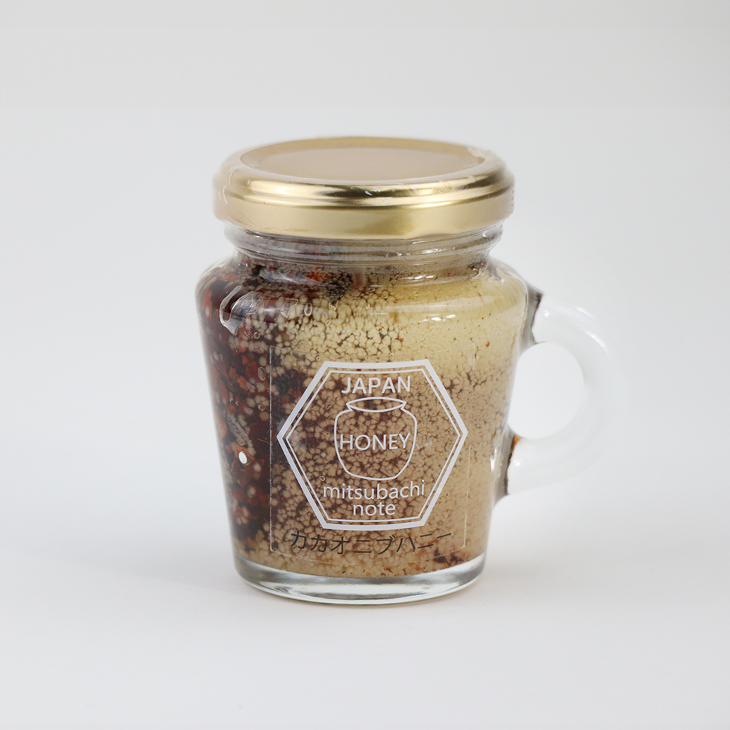| 原材料 | カカオニブハニー:国産はちみつ、ローカカオニブ(エクアドル産) いちごカカオニブハニーハニー:国産はちみつ、カカオニブ、イチゴ みかんカカオニブハニー:国産はちみつ、カカオニブ、みかんフレーク |