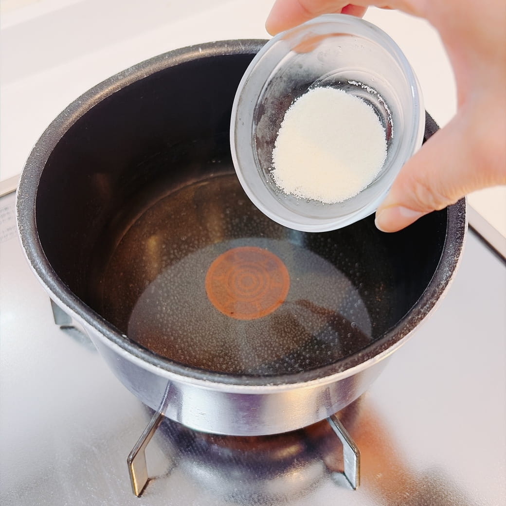 ・水で戻す必要のあるゼラチンの場合は、商品に記載されている分量の水で戻してから使ってください。