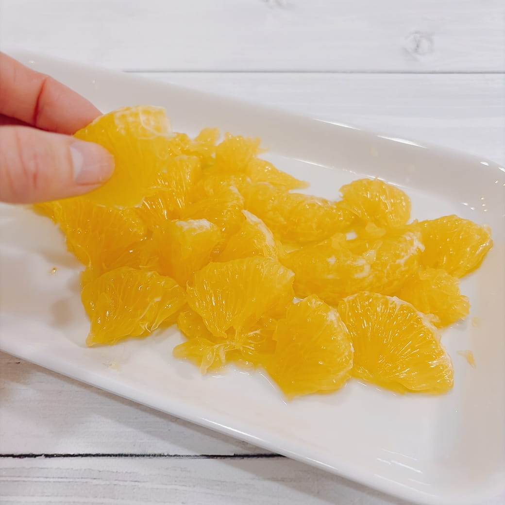 甘夏は皮と薄皮をむき、食べやすい大きさにする