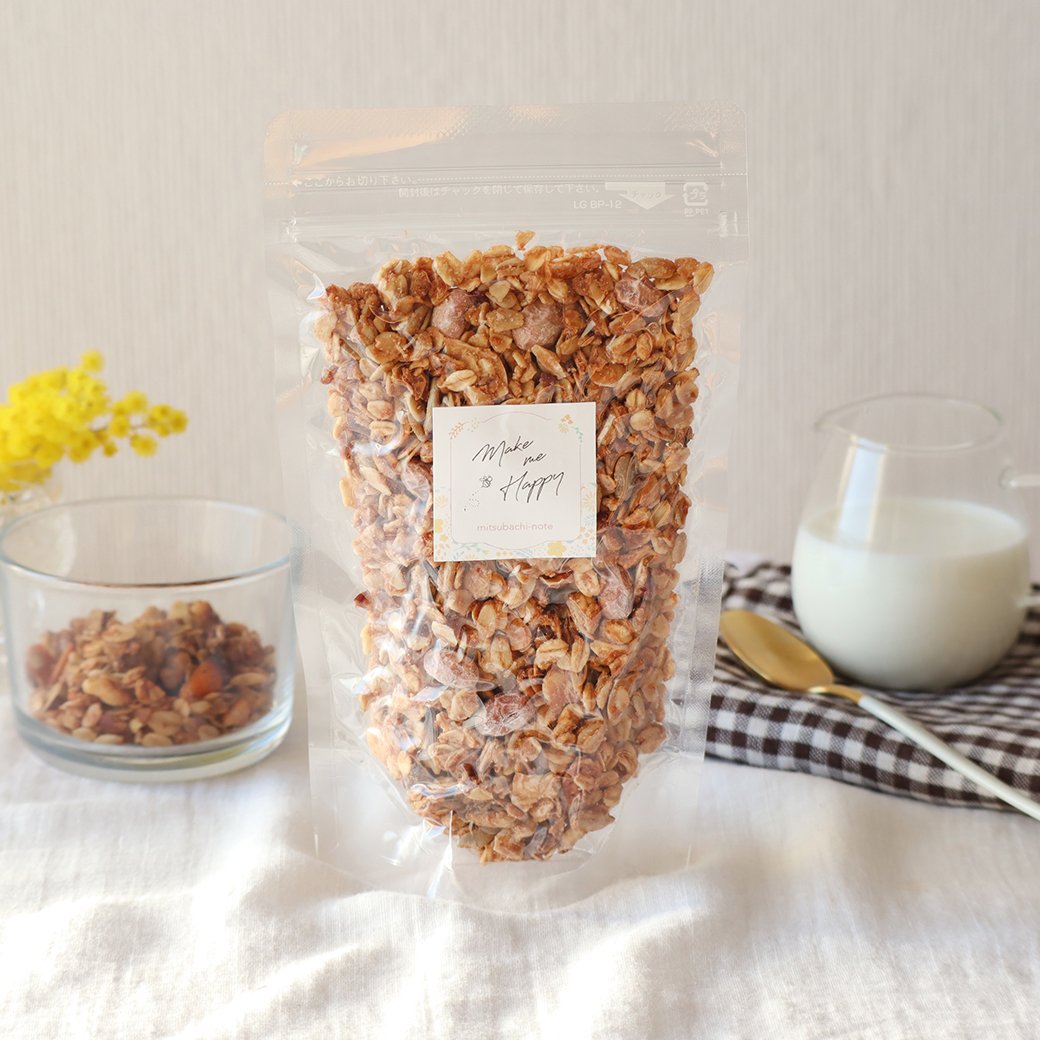 みつばちのーとのハチミツと、グラノーラを一緒に食べたときに美味しさが最大限になるように考えて作ったグラノーラです。