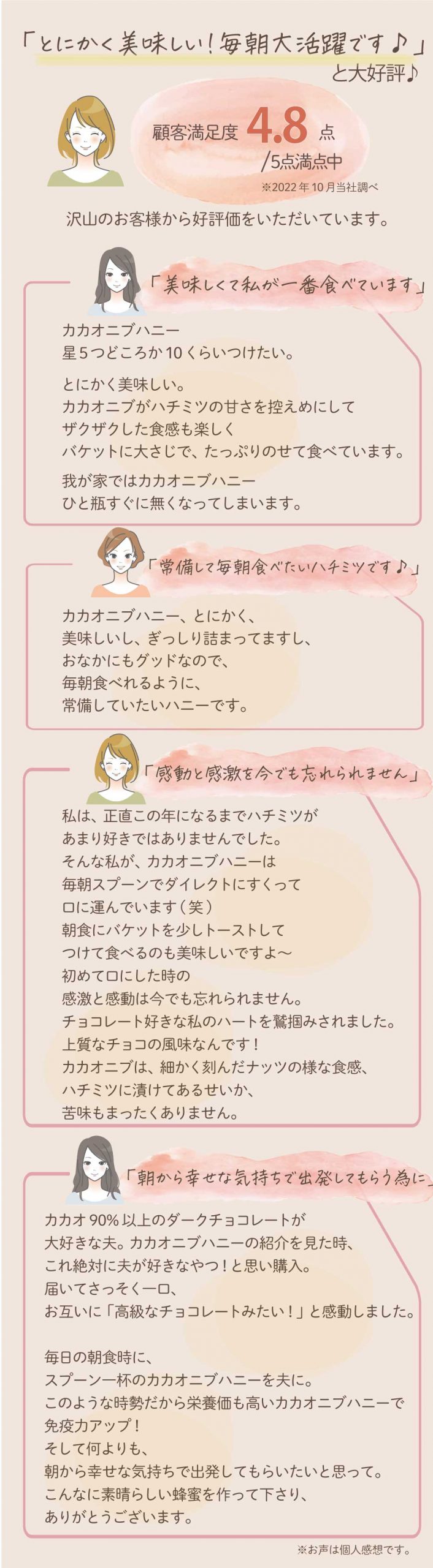 カカオニブハニーは、上品なチョコレートのような味わいで、満足度も高く、リピーター様もとても多い商品です。