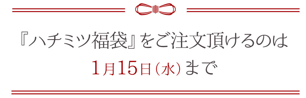 お得感満載の『ハチミツ福袋』をお買い求めいただけるのは、1月15日(水)までとなります。