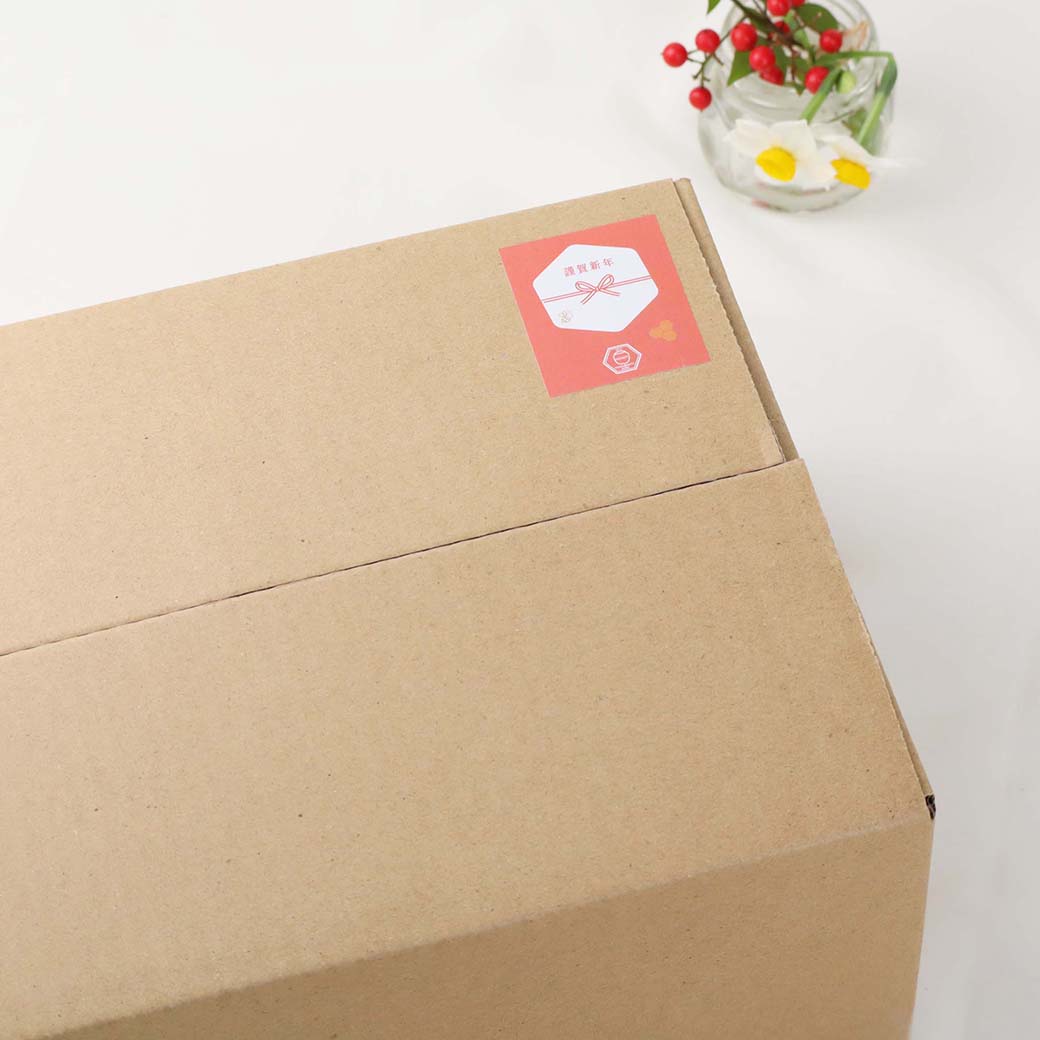また、「謹賀新年熨斗シール」を貼り付けてお届けいたします。