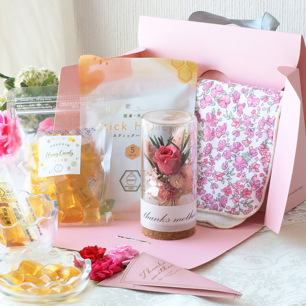新登場!「プリザーブドフラワー」やブーケ型「母の日カード」などが入った送料無料の『ボストに贈るハチミツセット』