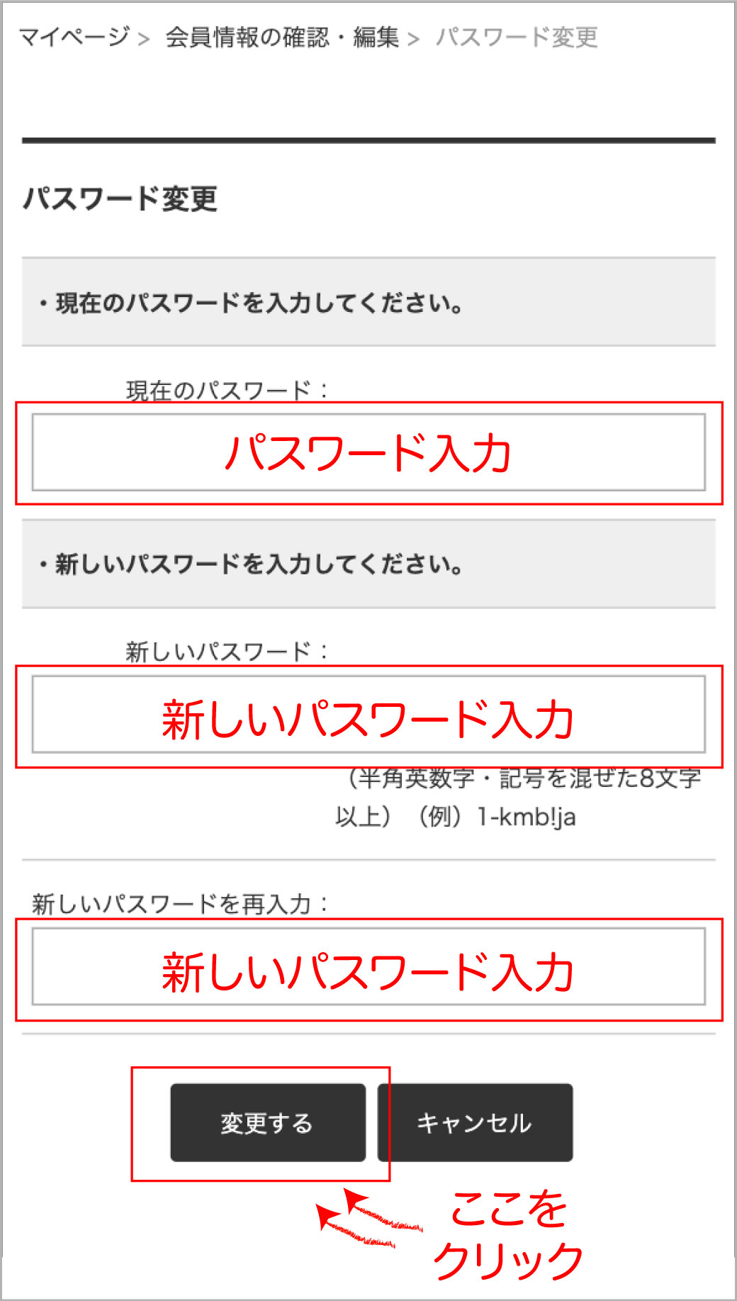 4.旧パスワードと新しいパスワードを入力して『変更する』をクリックする。